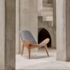 - Curved silhouettes in sofas, chairs, and tables